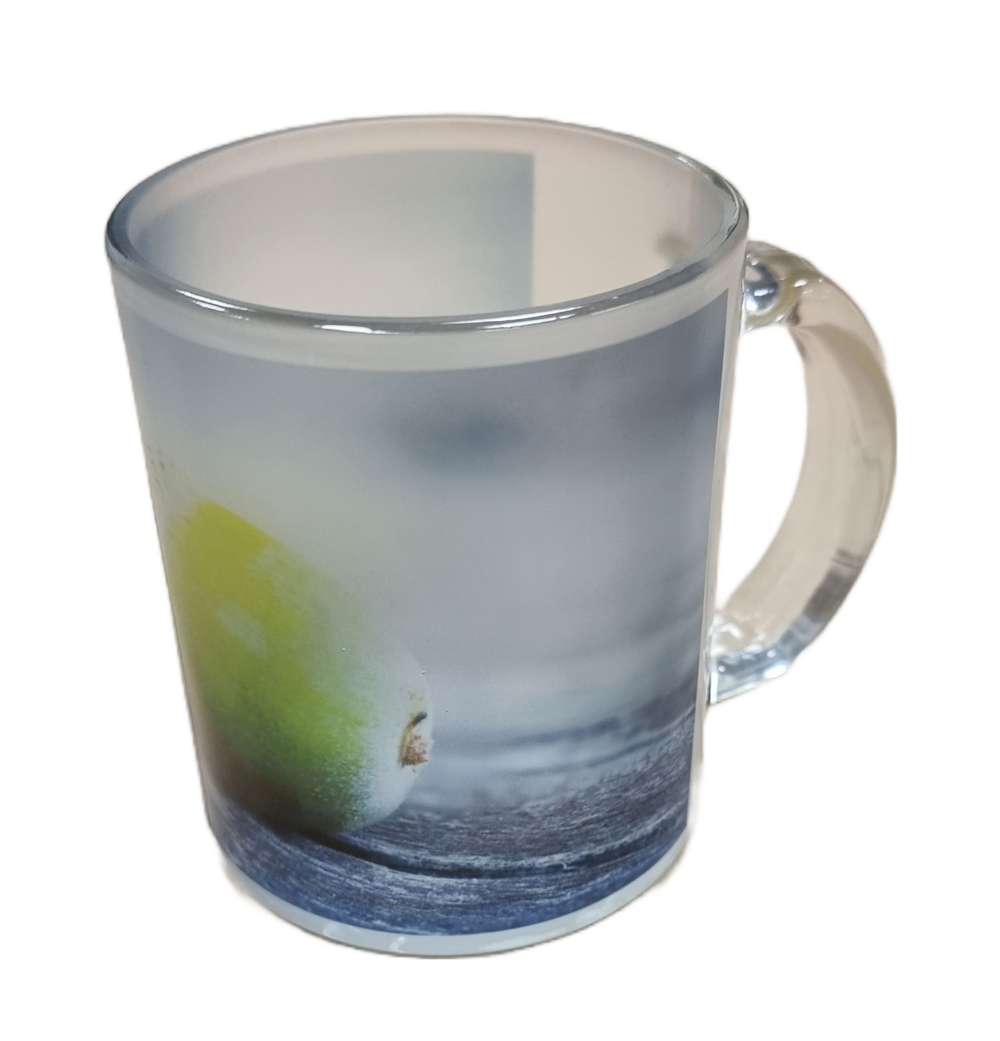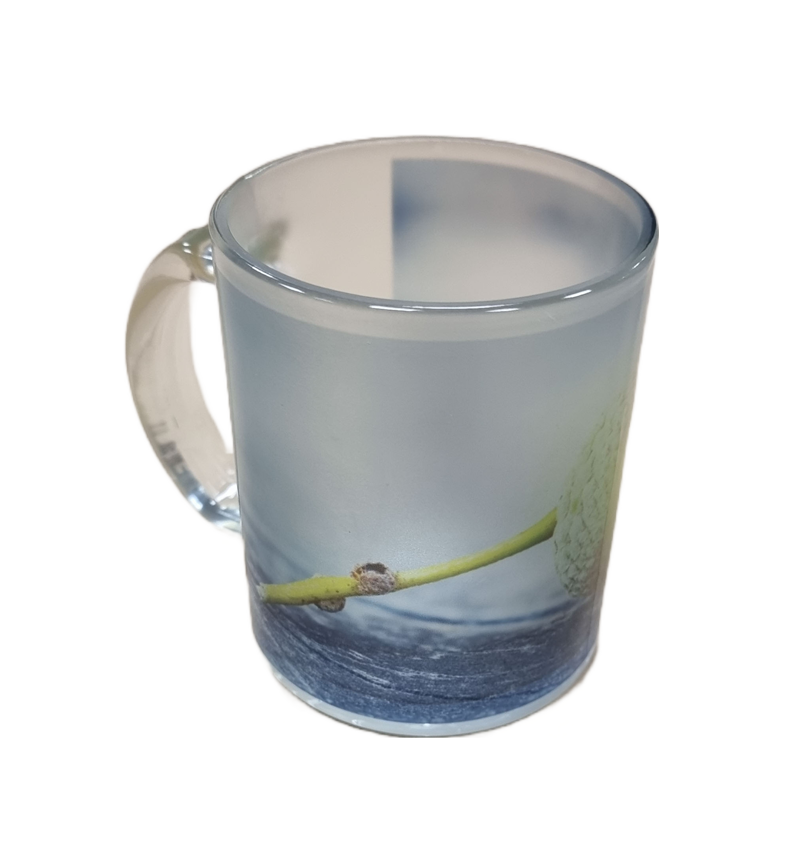 Mugg av frostat glas och med ett stort panoramatryck.
